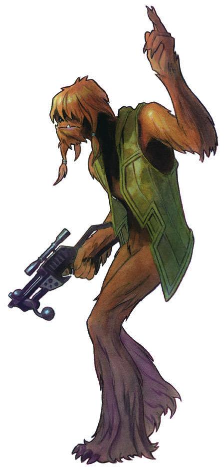 Wookiee moyen. DEXTÉRITÉ 2D, SAVOIR 1D, MÉCANIQUE 2D, PERCEPTION 1D, VIGUEUR 4D+1, TECHNIQUE 1D+2. Déplacement : 11.